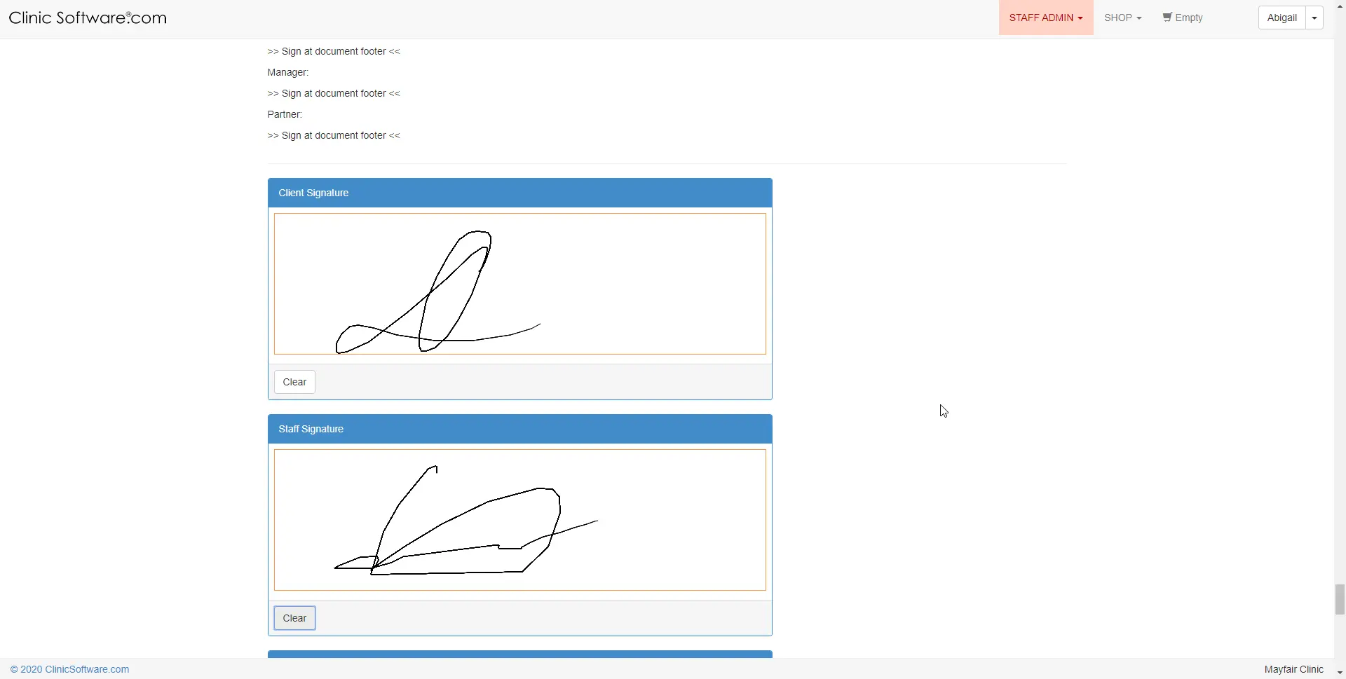 Privalomi kliento ir darbuotojo parašai.